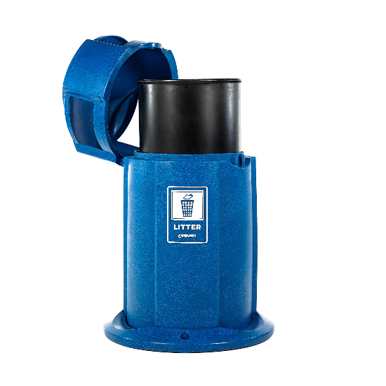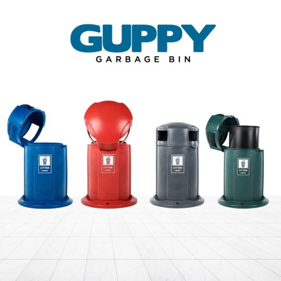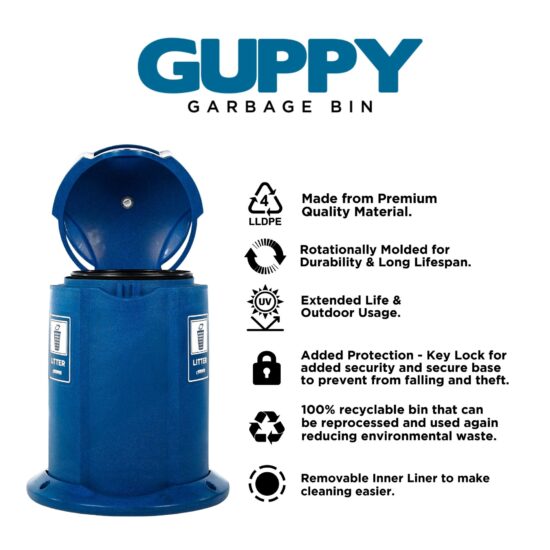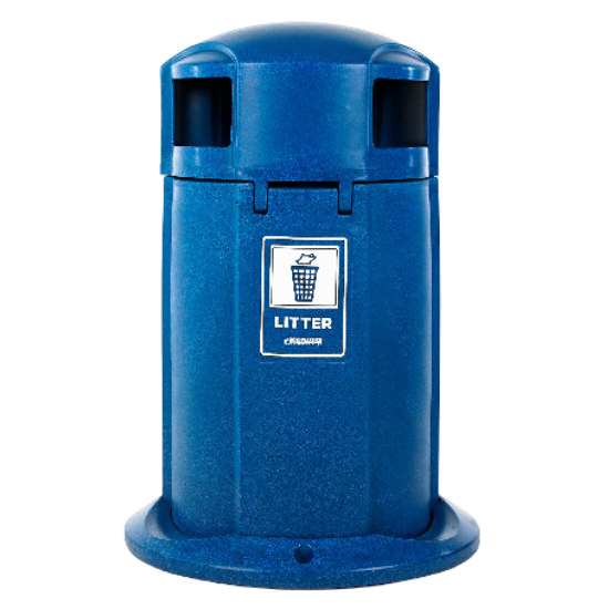 Designed for all seasons, the Rhino Guppy Bin combines style and function with its sleek, round shape and covered dome lid. The three-sided access makes disposal easy in high-traffic areas, while discouraging waste from being left on top. Built from UV-protected, corrosion-, rust-, and chip-resistant plastic, this bin is ideal for both indoor and outdoor use. Its smooth interior surface ensures quick, easy cleaning.