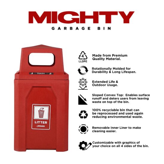 Perfect for high-traffic areas like schools, pools, malls, and parks, this 45-gallon receptacle offers easy access from all sides. Built with UV protection, Rhino’s Mighty Bin proves durable for both indoor and outdoor use, and is resistant to corrosion, rust, and chips. Additionally, its smooth interior makes cleaning quick and hassle-free.